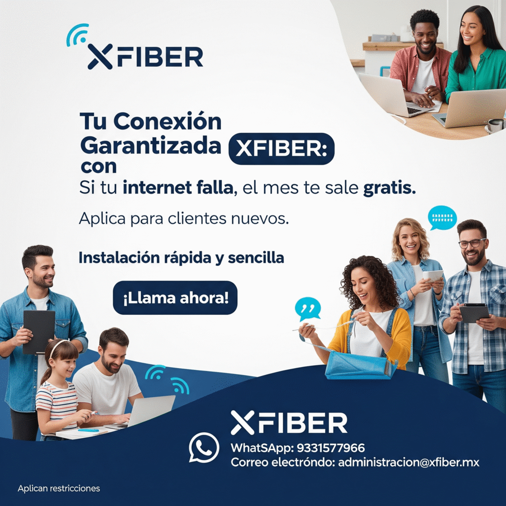 «Tu Conexión Garantizada con XFIBER: Si tu internet falla, el mes te sale gratis.»
